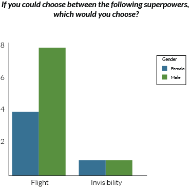 I begin this course with an introductory survey that students are required to take during the first week of class2. Along with some demographic questions, I include measures of familiarity with and interest in course content. I also ask them to choose between the superpowers of flight and invisibility.