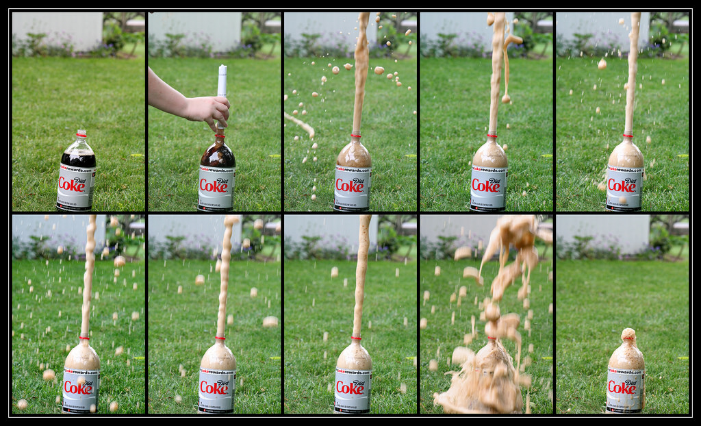 | 3. What are the influencing forces? | What are the factors that will influence your experimental results? | Number of Mentos, Mentos type (flavor), soda type, bottle shape, bottle size, soda temperature, wind |